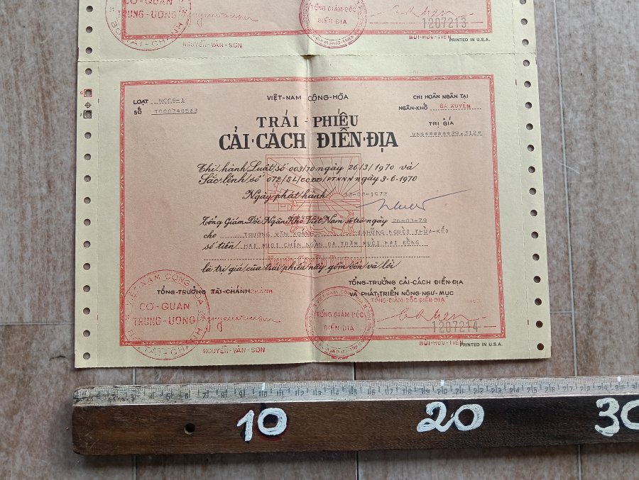 Trả 20% tiền mặt, 80% là tờ Trái Phiếu Cải Cách Điền Địa nầy