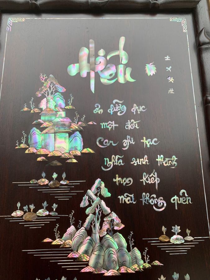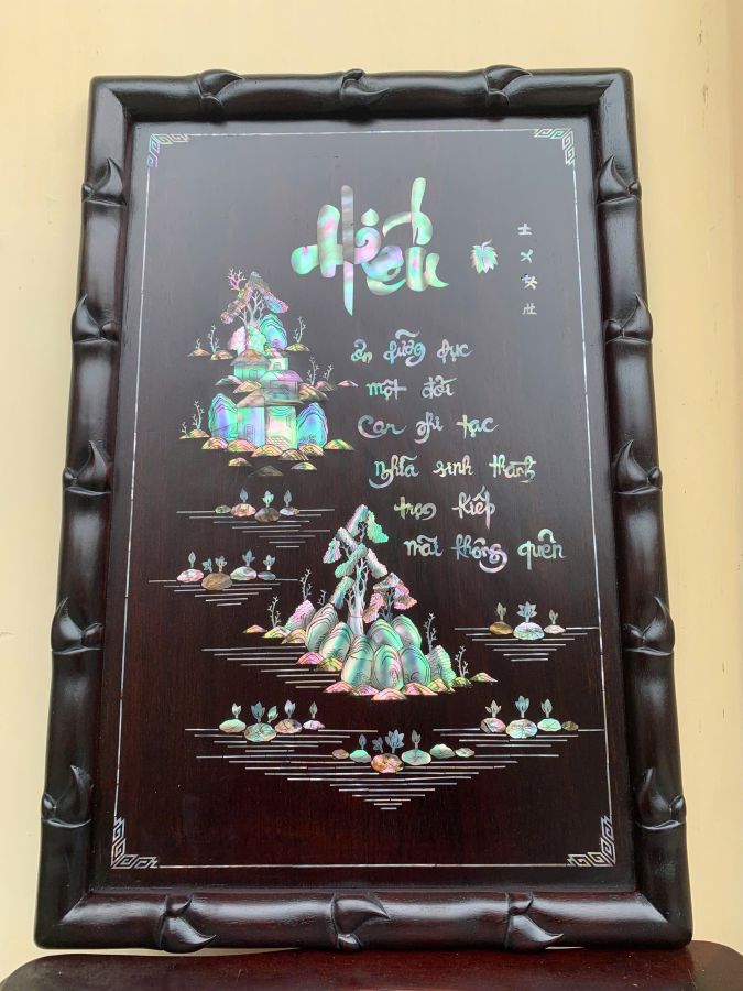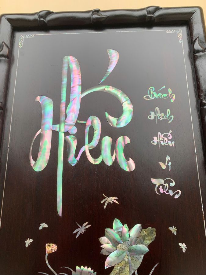 Tranh chữ : nhẫn và Hiếu gỗ gụ Kt 62-42 g