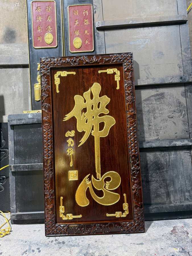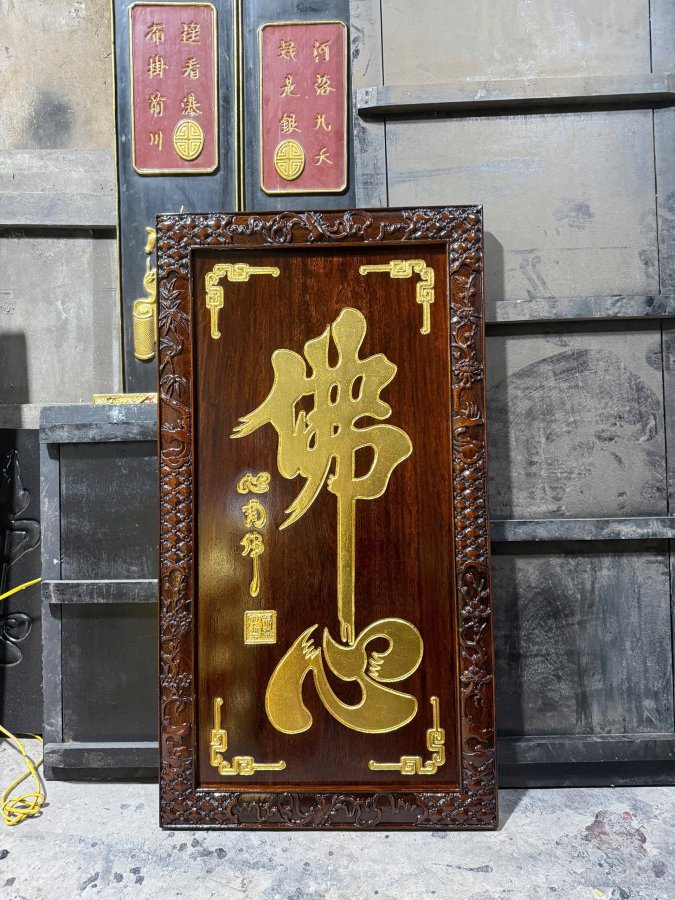 Tranh chữ Phật tâm Kt : 105 x 57 x 3,5 Gỗ lim
