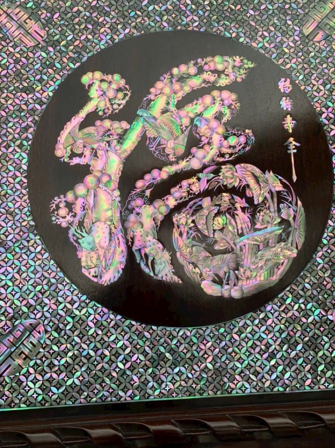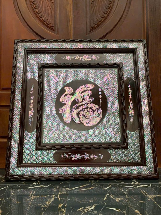 Tranh chữ phúc khảm ốc đỏ Kt vuông 97cm