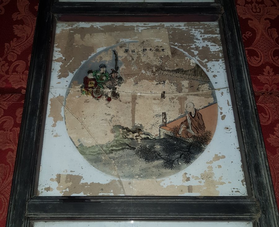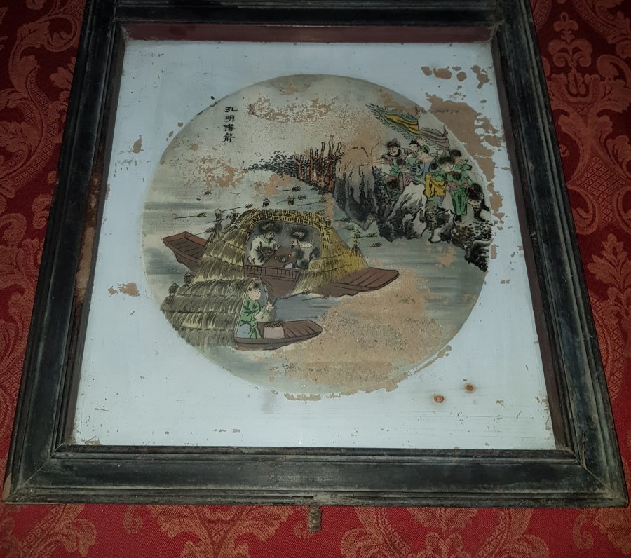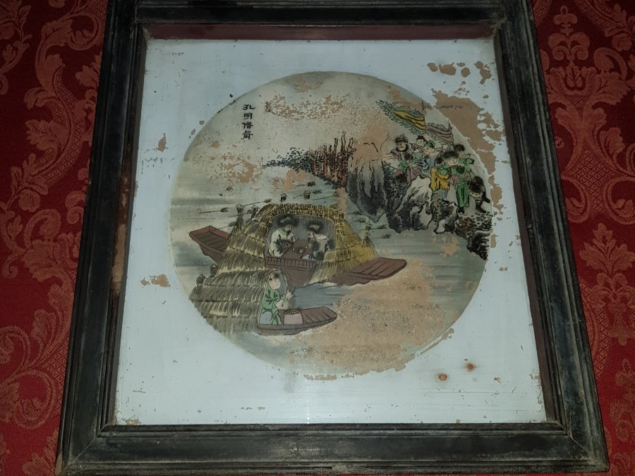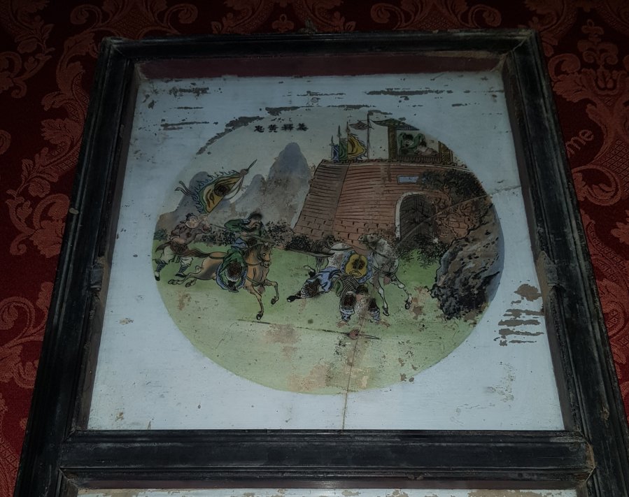 Tranh cổ vẽ trên kính khung bằng gỗ điển tích trong Tam Quốc.