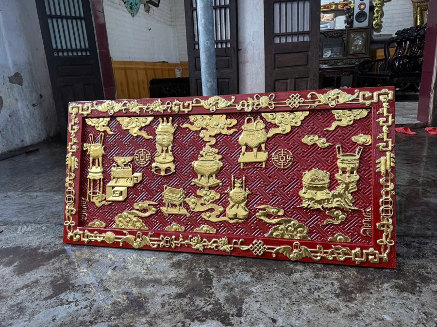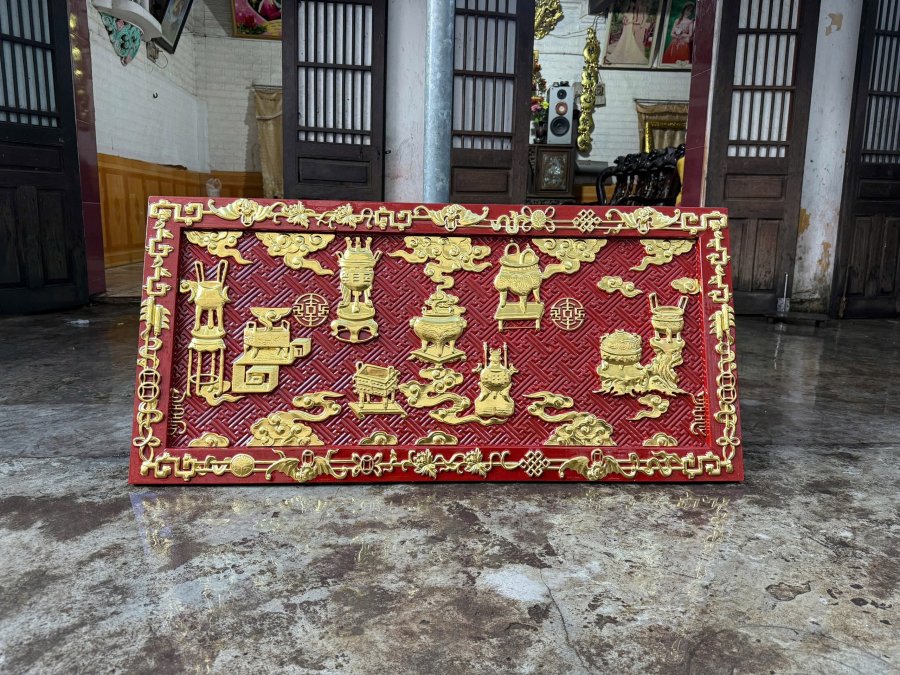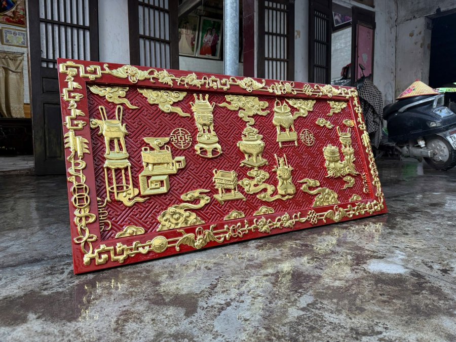Tranh cửu đỉnh Kt. :127 x 60 x 4 Gỗ dổi