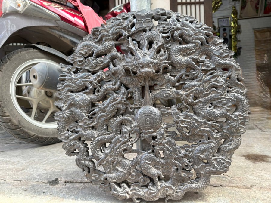 Tranh cửu long chân châu, Kt 50 x 50 x 3 Gỗ lim