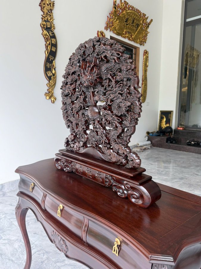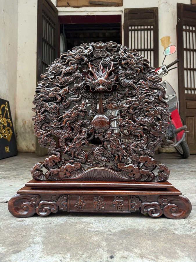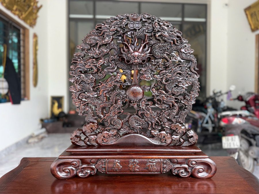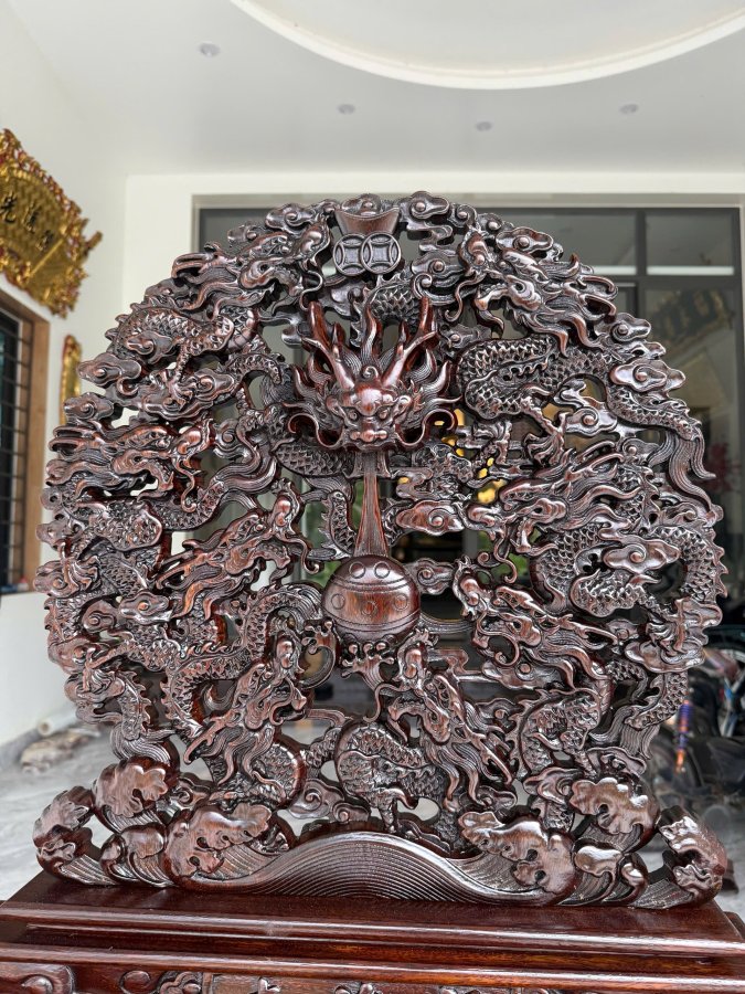 Tranh cửu long tranh châu Kt : 62 x 62 ( đế dày 8cm , tranh dày 3cm) Gỗ lim