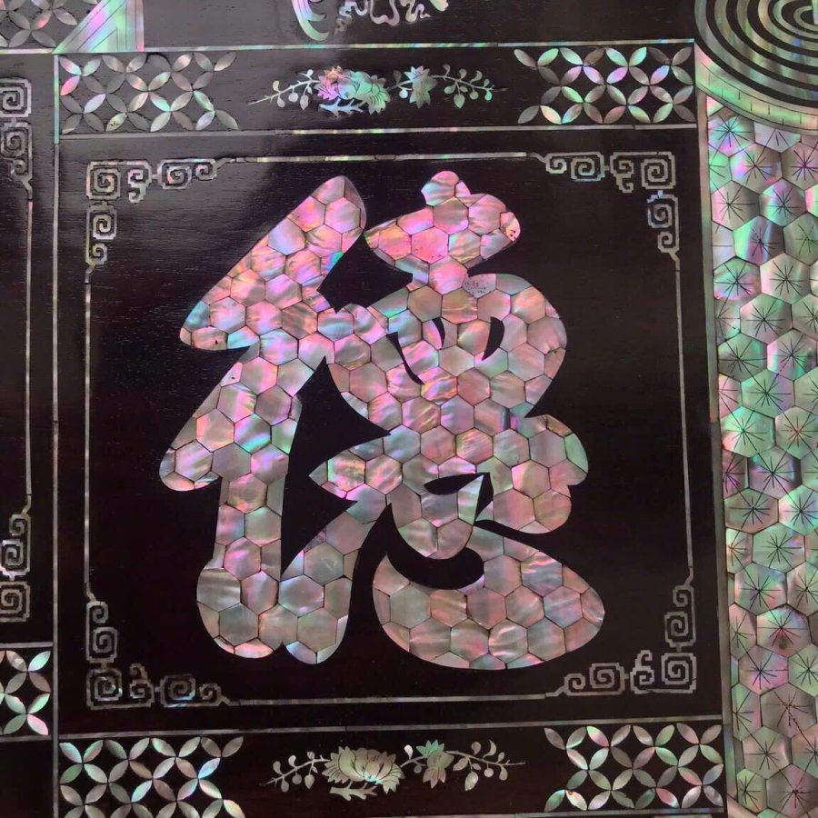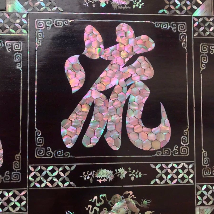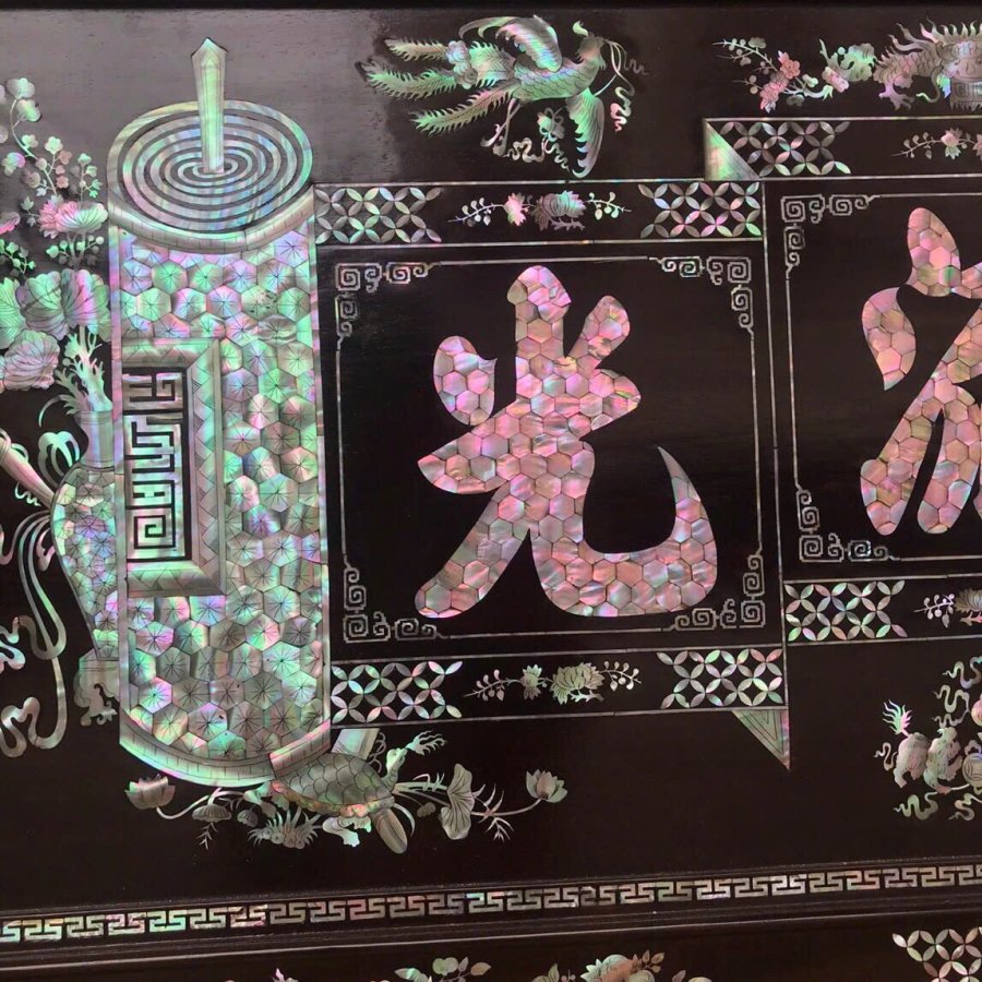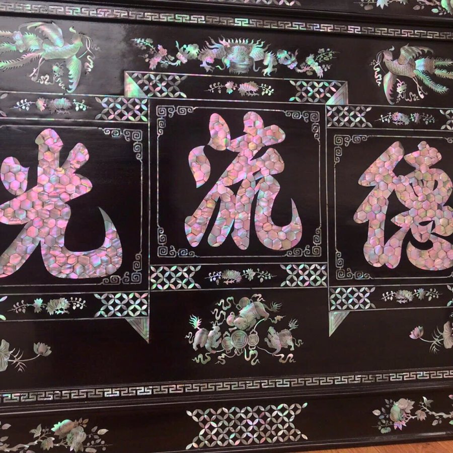 Tranh đại tự : Đức -lưu -quang gỗ gụ khảm ốc Singapore kt 127/60