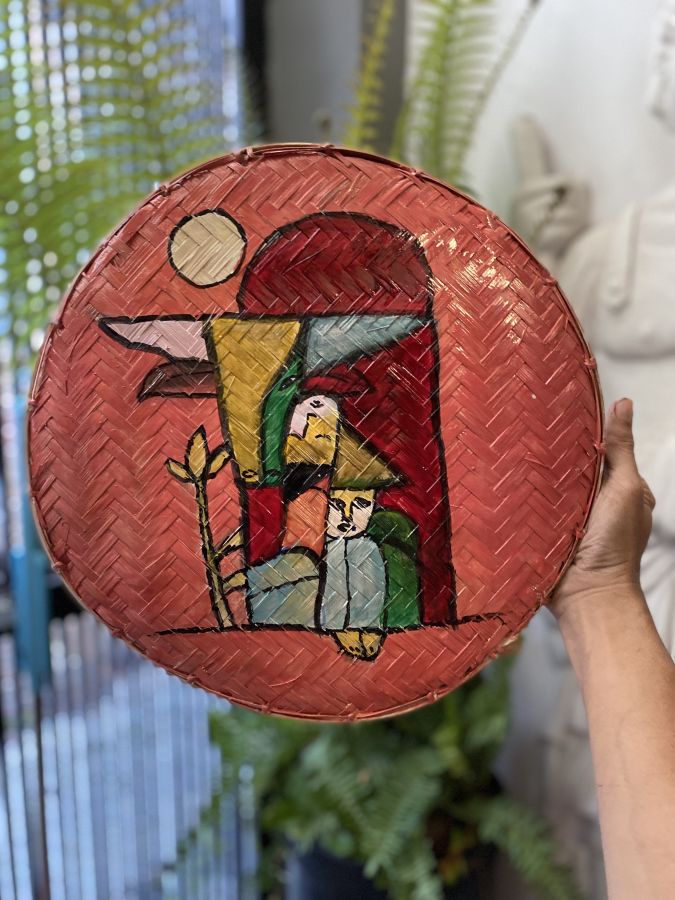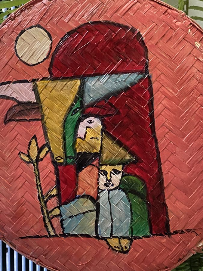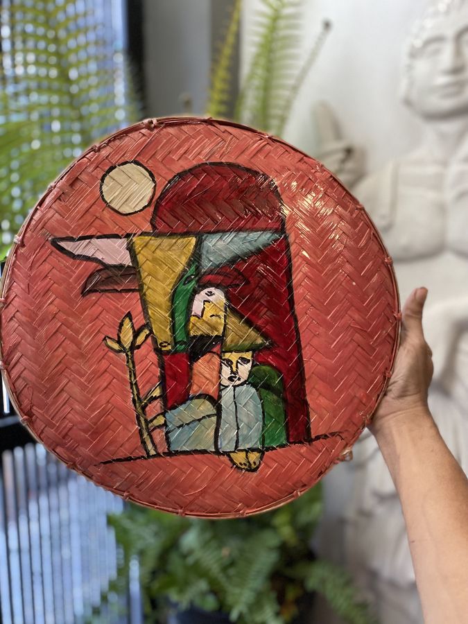 Hình ảnh mẹt tre gần gủi người nông dân lúa nước Việt nam , nay mình mang nội dung con trâu , nón lá , mục đồng vào tác phẩm này . Cô chú anh chị gần xa ủng hộ. Kích thước 35cm Giá :250k Thích hợp làm quà tặng .