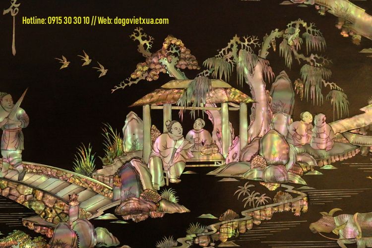 Từ nguyên liệu là gỗ gụ (gõ mật), ốc sà cừ kết hợp với sự tài tình, khéo léo và tỉ mỉ của những người nghệ nhân, tất cả đã tạo lên một bức tranh khảm ốc đẹp, đẳng cấp sẽ là một điểm nhấn ấn tượng, độc đáo, tôn vinh vẻ đẹp cho những căn phòng của gia chủ.