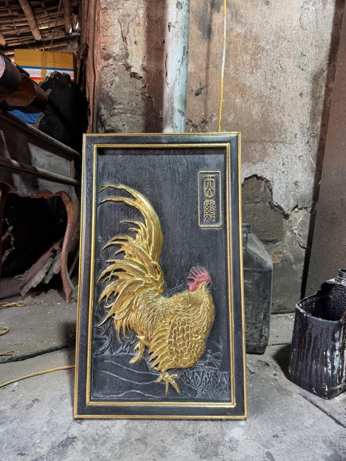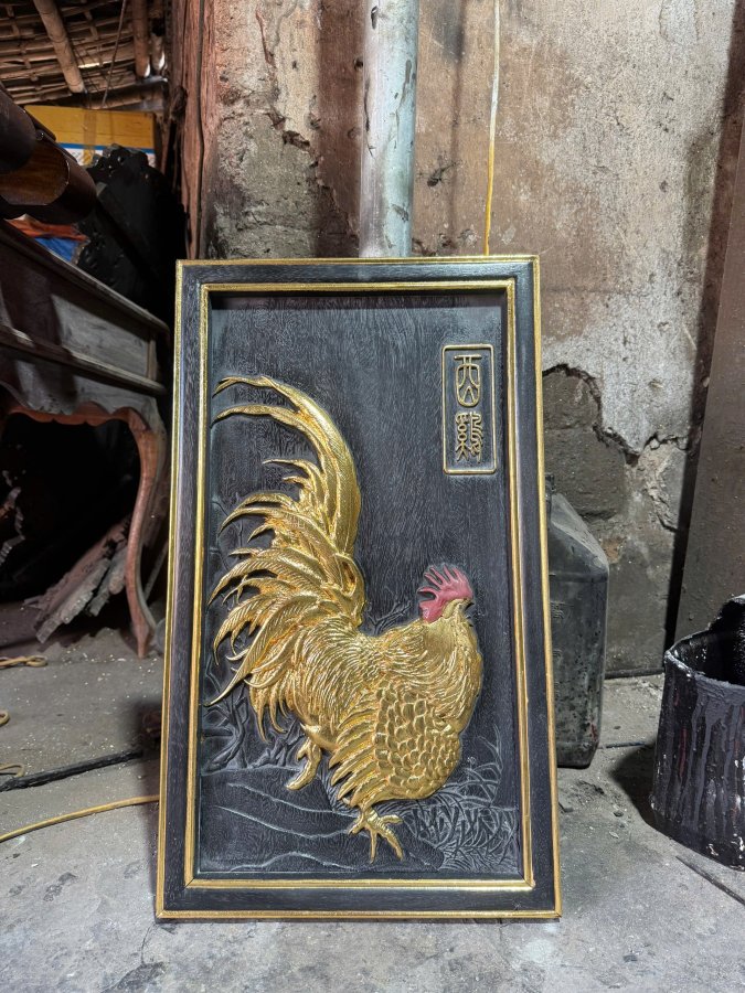 Tranh gà Kt : 65 x 35 x 3 Gỗ lim