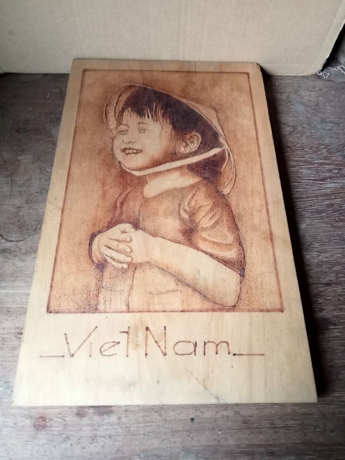 Gluu một tranh gỗ, chủ đề con người Việt Nam.