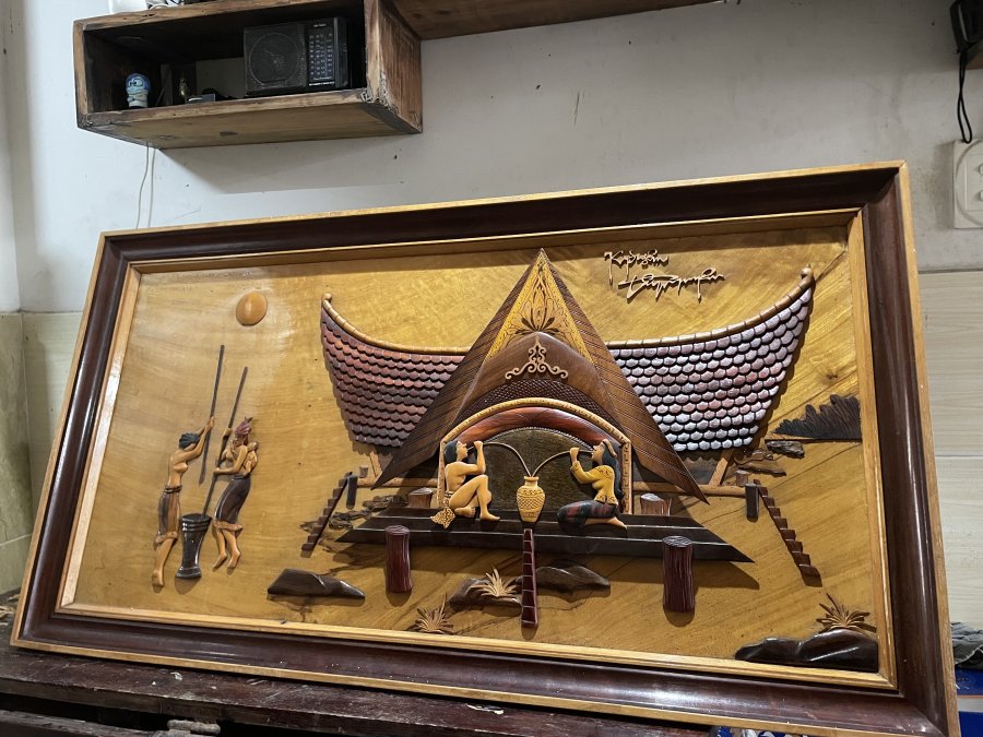 Em bán một bức tranh gỗ nổi chủ đề Tây NguyênKích thước: dài 108, cao 58.5Ai thích thì mua giùm cảm ơn!Giá trên bao ship toàn quốc sau khi nhận ck!