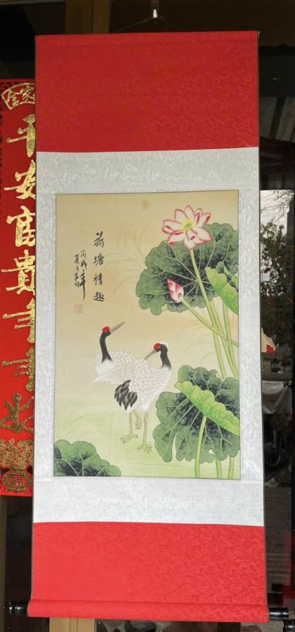 tranh hạc vẽ tay 荷塘情趣 -đầm sen là niềm vui .