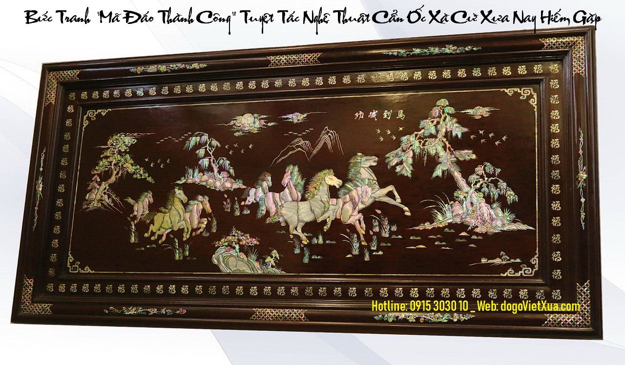 TRANH MÃ ĐÁO THÀNH CÔNG (BÁT MÃ) - KHẢM CẨN ỐC XÀ CỪ ĐẸP TUYỆT MỸ Lh: 0915 3030 10