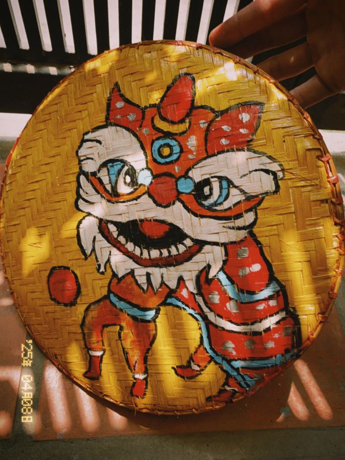 Tranh vẽ tay múa lân trên mẹt kt 30x30 giá 120k +ship ,Thanks ah !