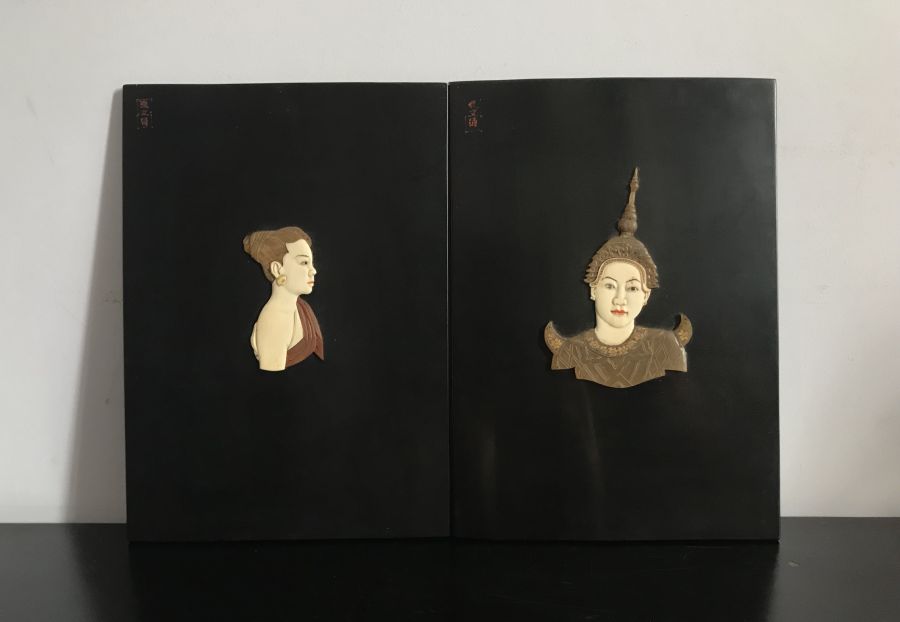 Giao lưu 2 bức tranh cô Lào và Cam của xưởng mỹ nghệ Trương Văn Thanh, chất liệu sừng. Kích thước 24.5cmx34.5cm, tình trạng như hình. Giá: 18 triệu