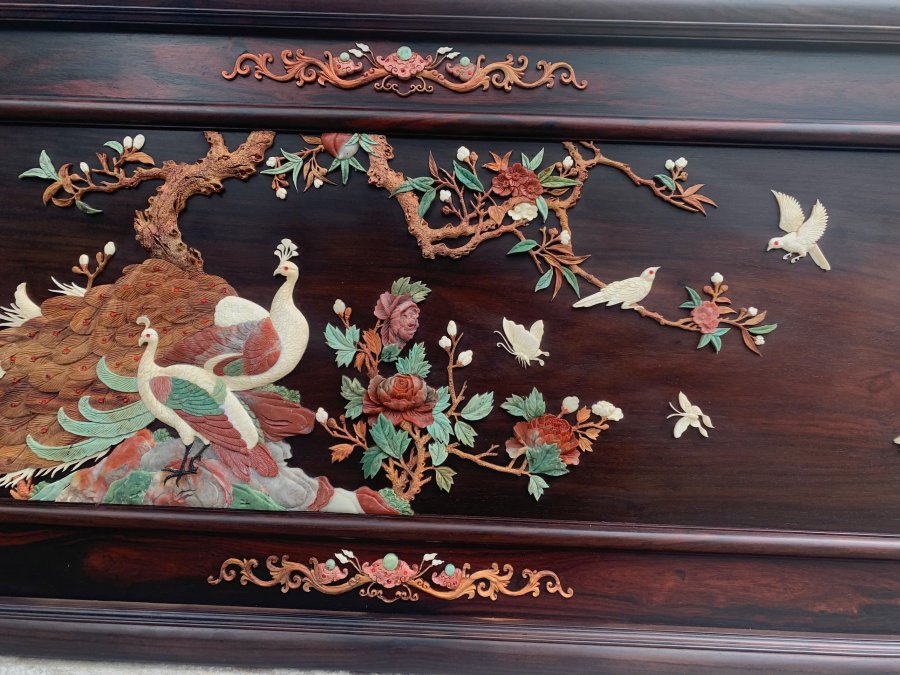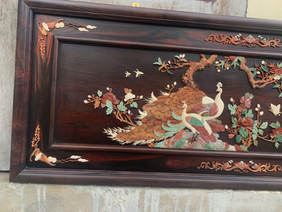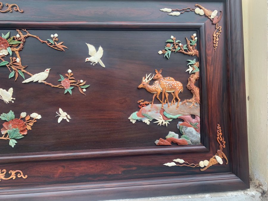 Tranh phu thê gỗ trắc khảm nổi gỗ xưa nga Kt 1m40-54