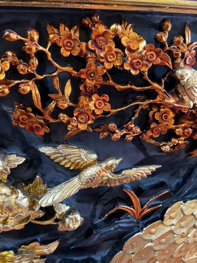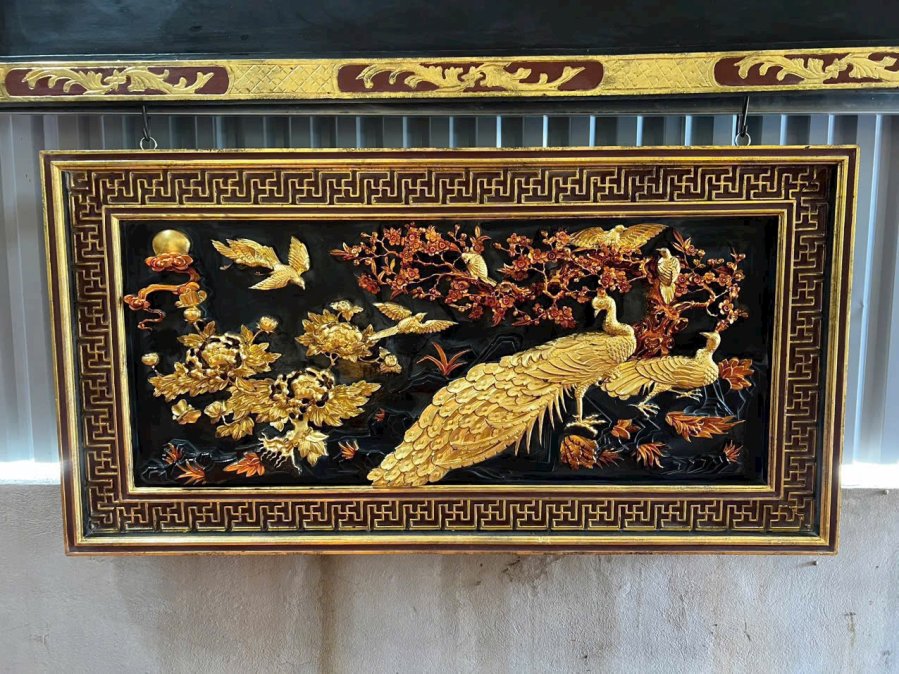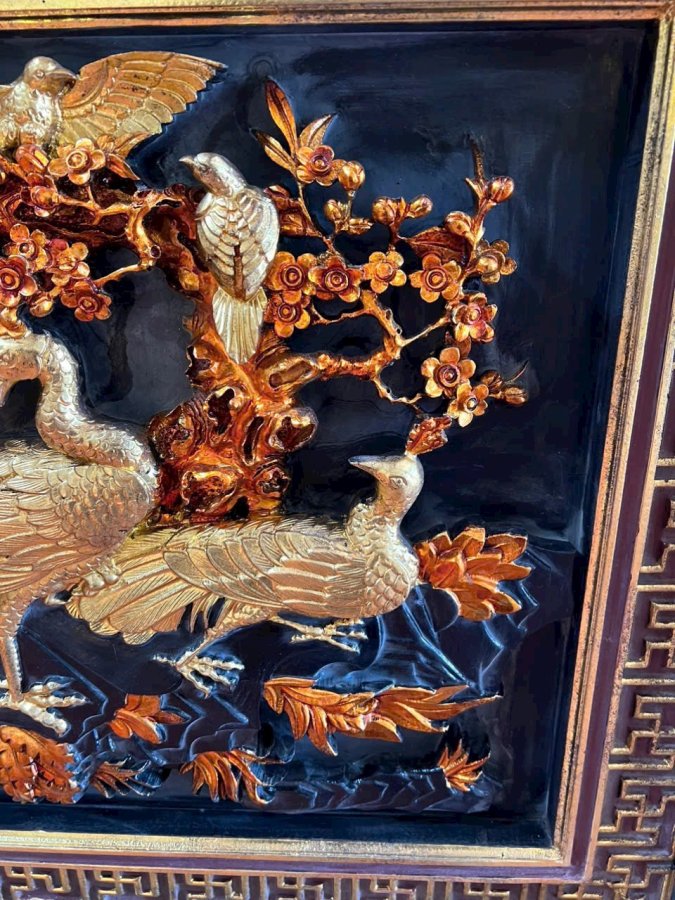 Tranh phu thế viên mãn gỗ dổi thiếc vàng