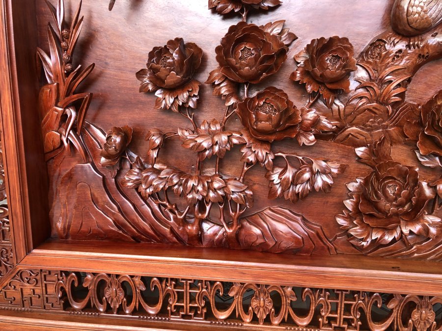 Tranh phu thê viên mãn gỗ hương kt 173-105-10cm