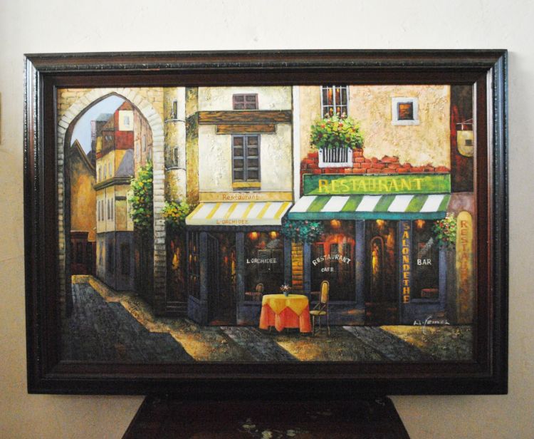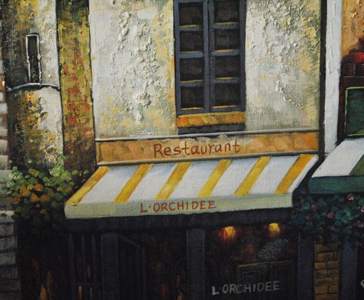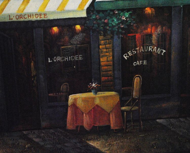 Tranh sơn dầu cảnh đường phố nhà hàng ở Châu Âu