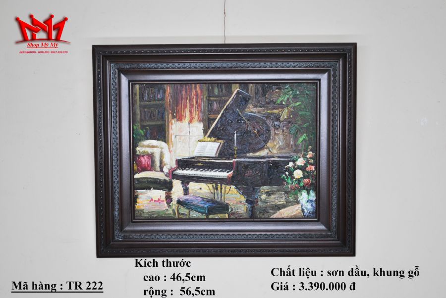 Tranh sơn dầu hình căn phòng với cây đàn piano.