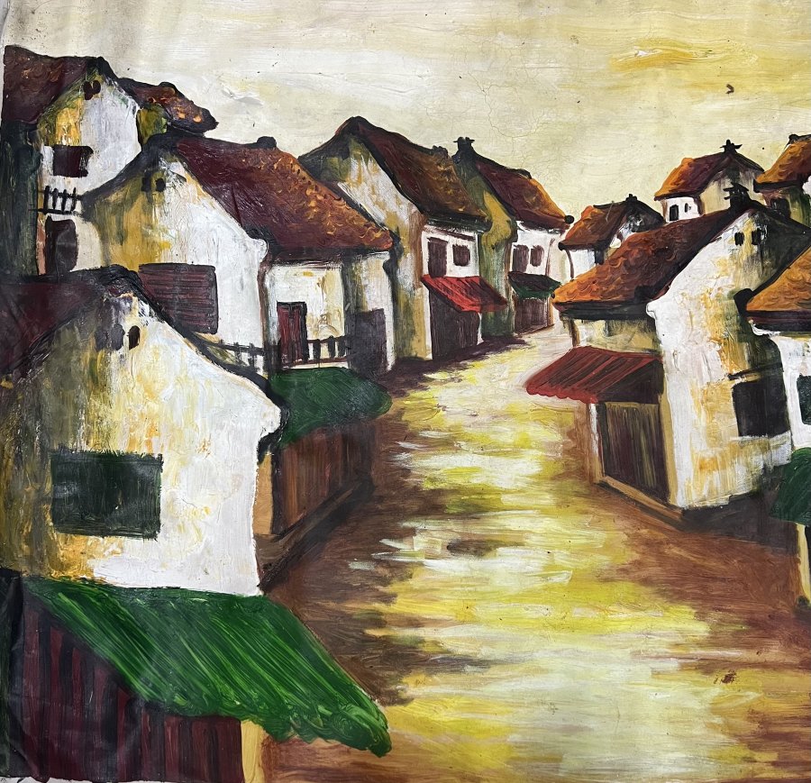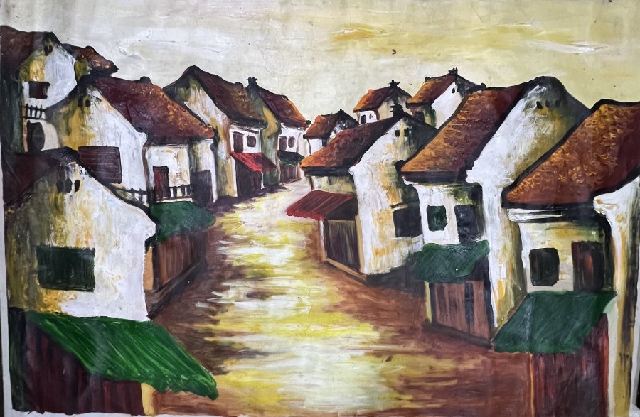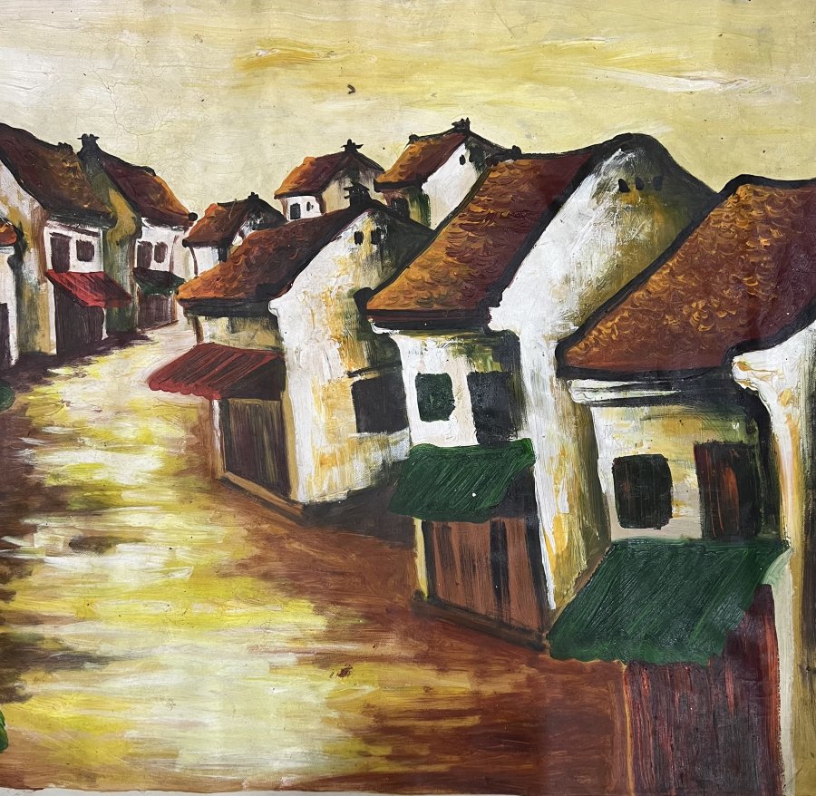 Tranh Sơn dầu phố cổ Kt 80cm x 1m10 Giá 2500k