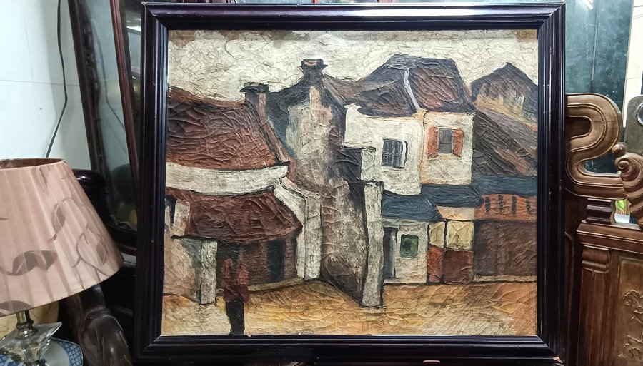 Tranh sơn dầu phố cũ . Kích thước 78 × 66 cm , như hình . Giá bán 900k .
