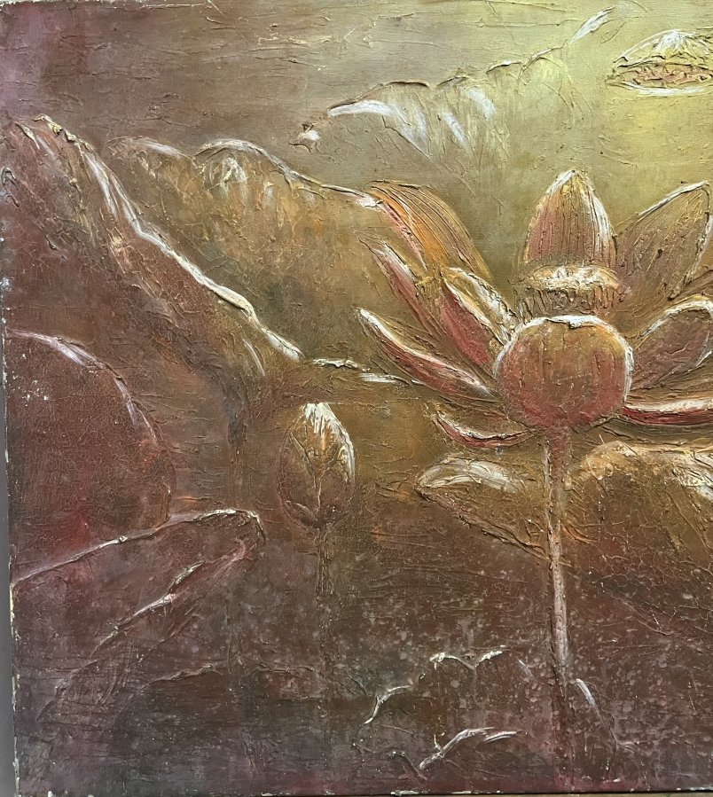 Tranh Sơn dầu vẽ Sen Tác giả Hsĩ Kt 60cm x 90cm Giá : 2000k