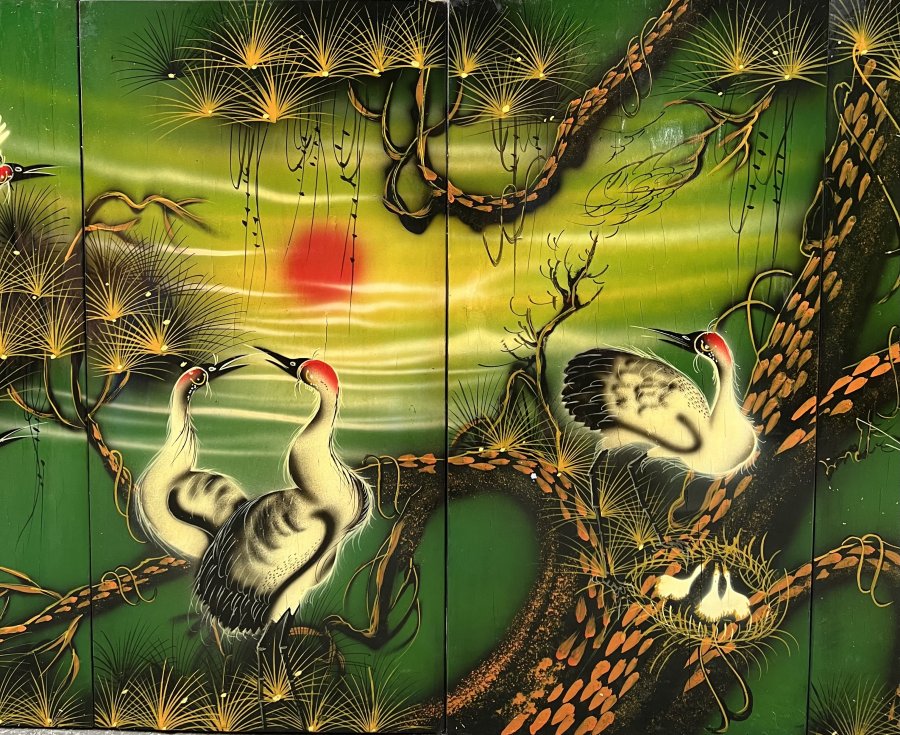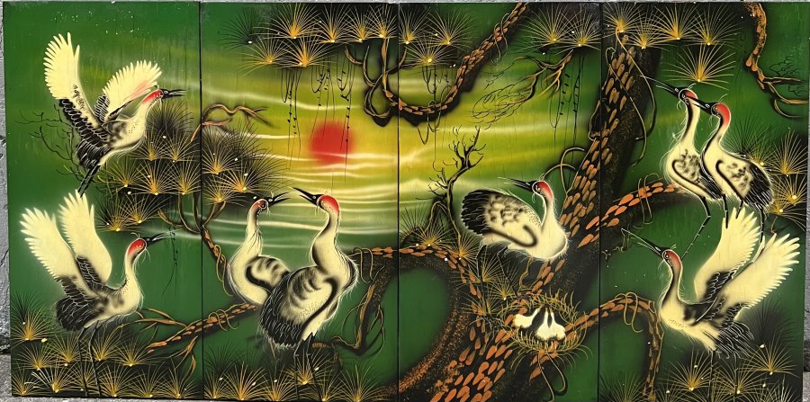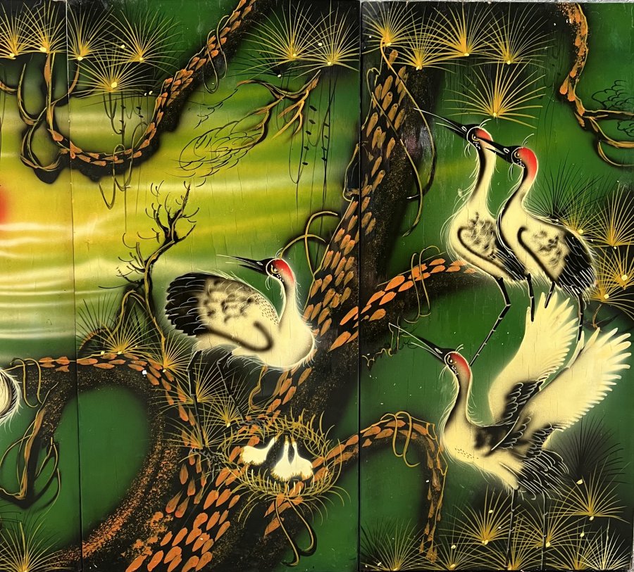 Tranh Sơn mài xưa Tích Tùng Hạc Kt 60cm x 1m20