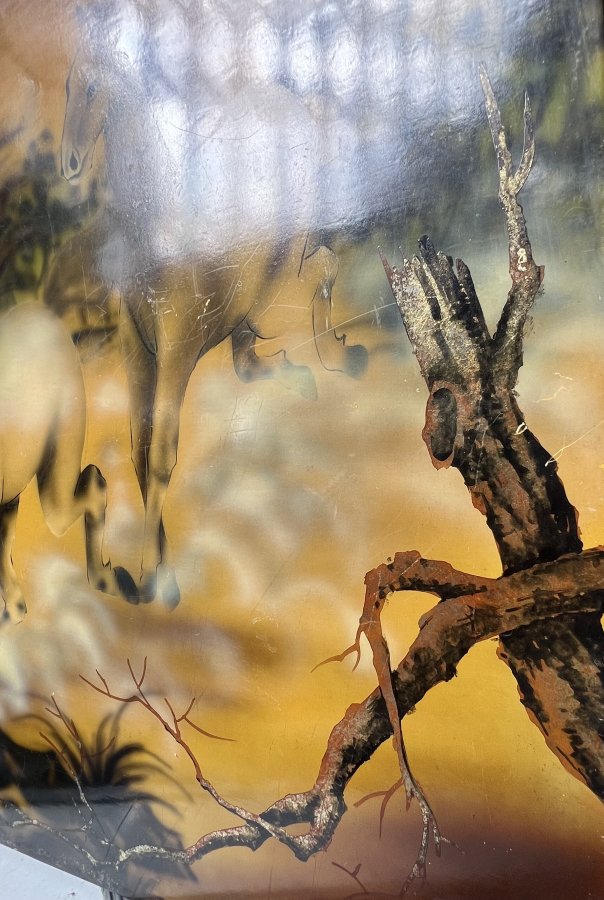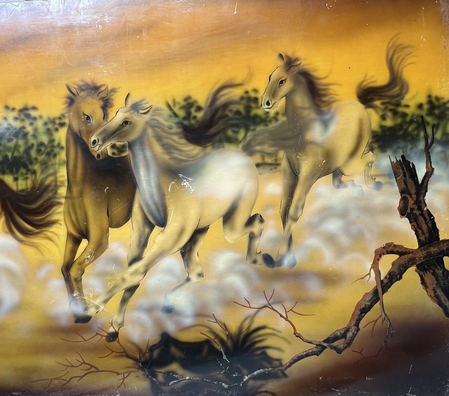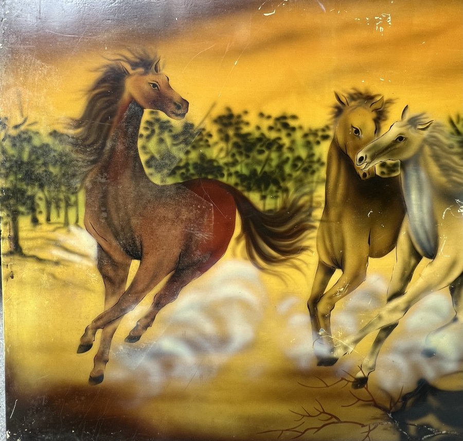 Tranh Sơn mài xưa Tuấn Mã Truy Phong Kt 50cm x 80cm