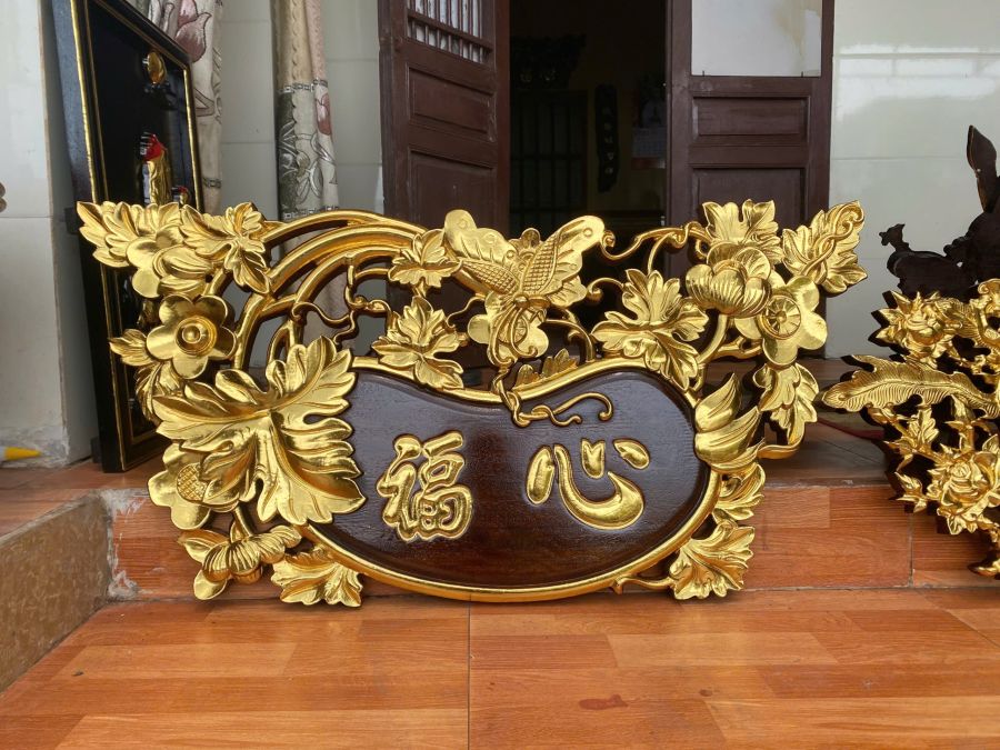 Tranh Tâm Phúc dát vàng kt 90 x 45 x 3 gỗ lim
