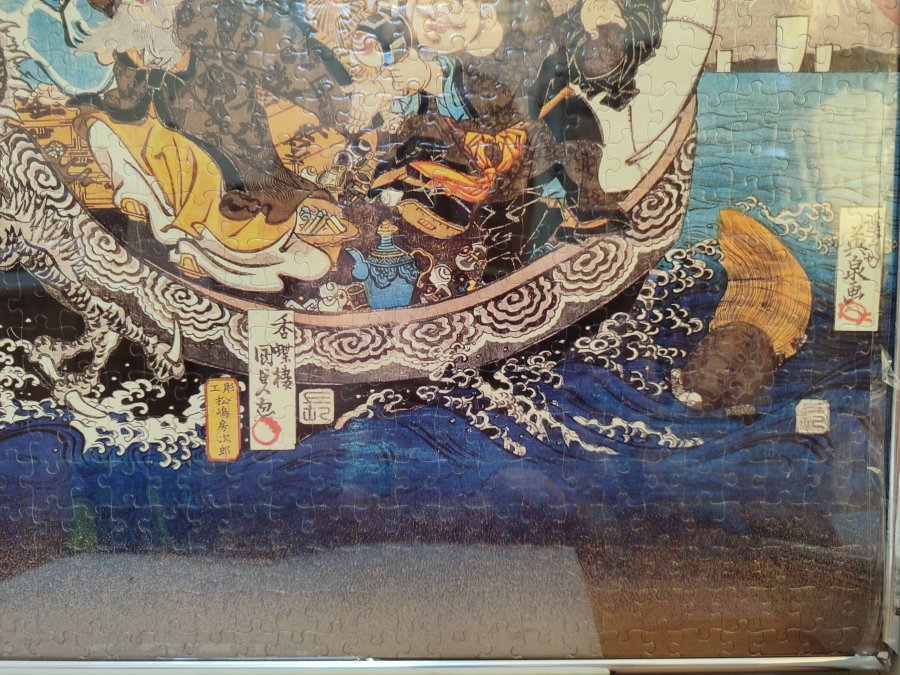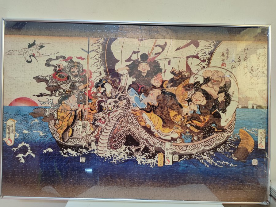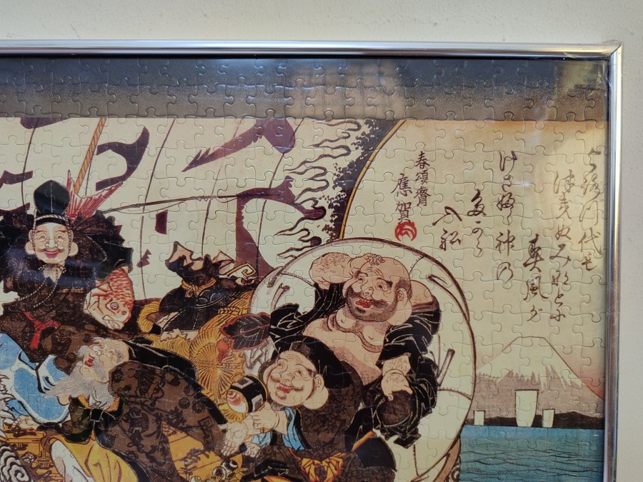 Bức tranh thất phúc thần (7 vị thần may mắn) hàng Nhật, khung nhôm, tranh còn rất mới, vận chuyển về bị hở góc khung nhôm