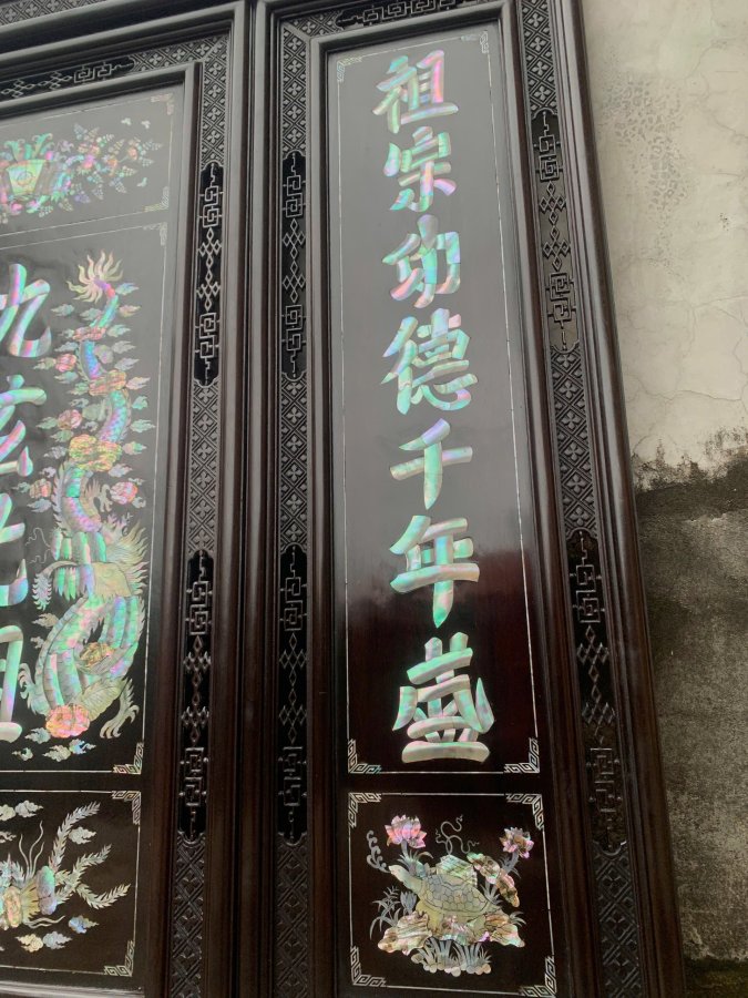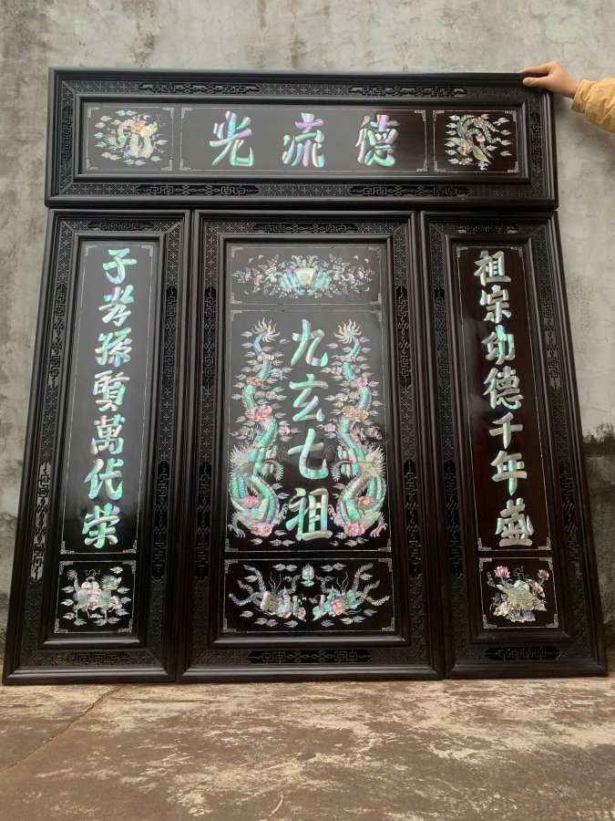 Tranh thờ khảm ốc gỗ gụ Kt 1m36-1m55