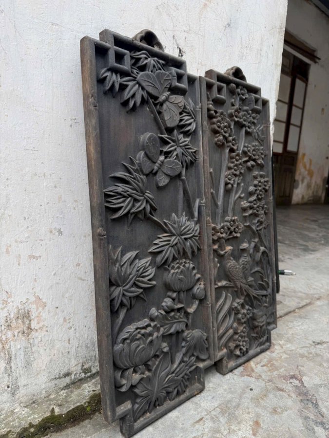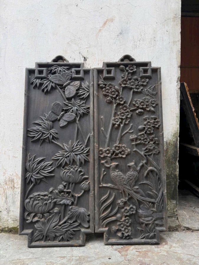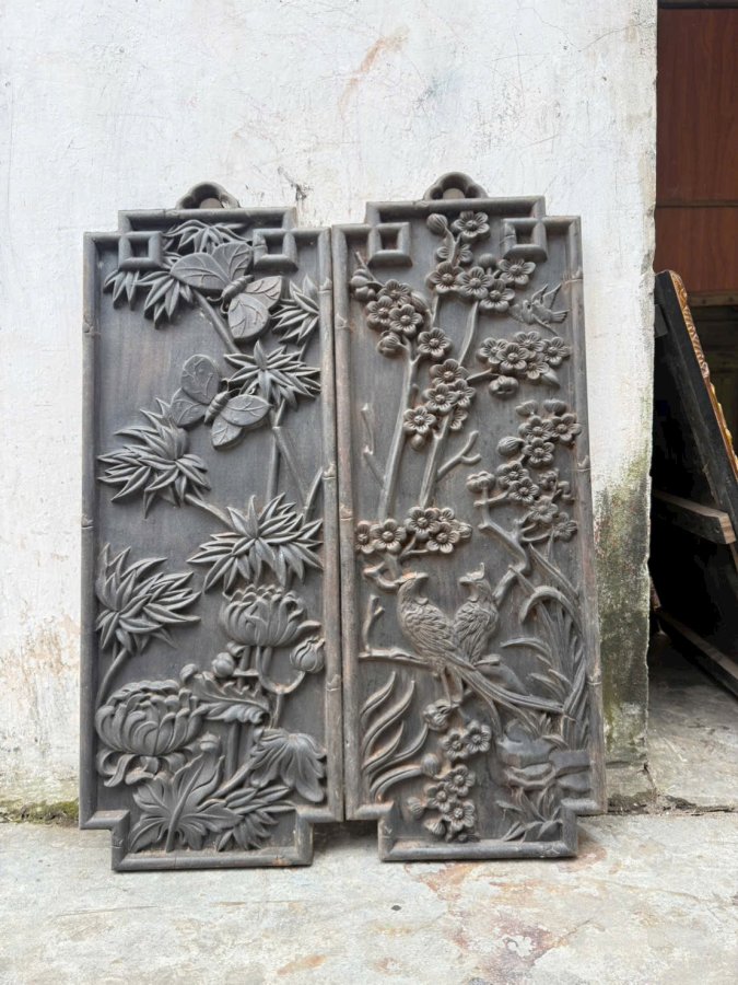 Tranh trúc cúc mai lan Kt : 80 x 30 x 3 Gỗ lim