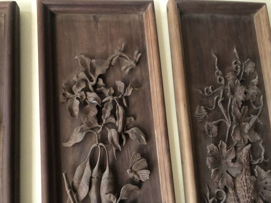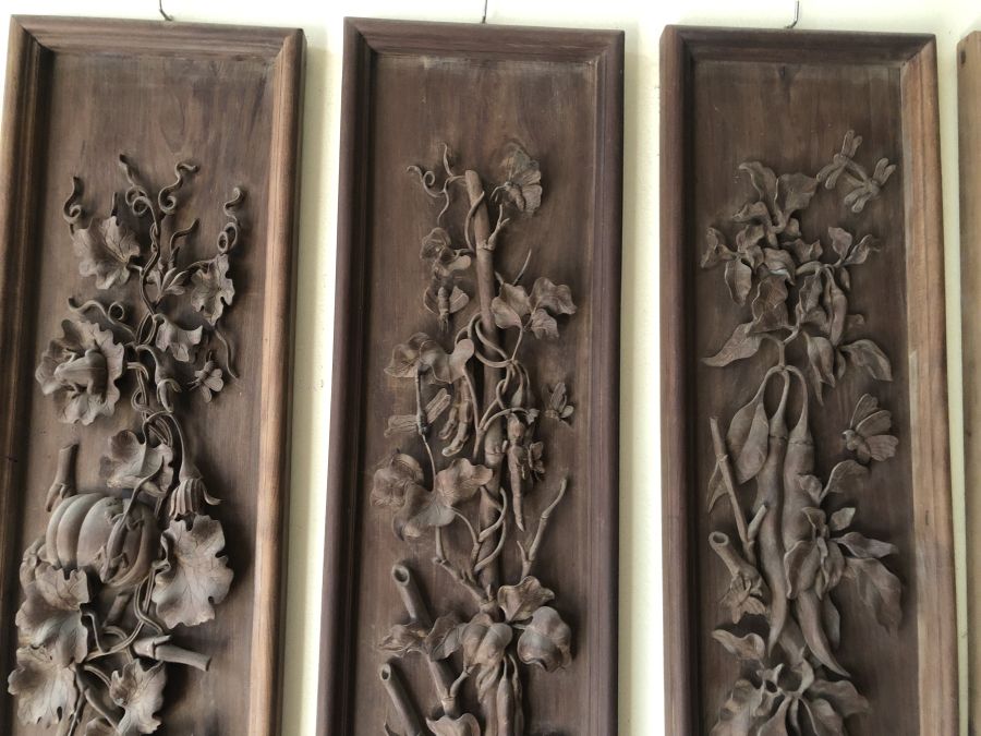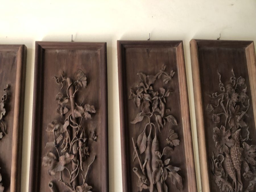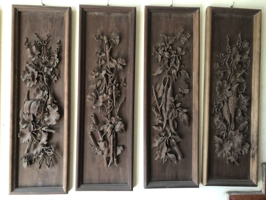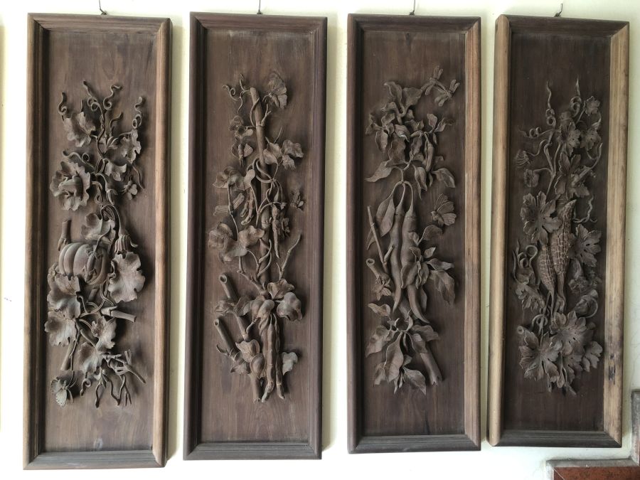 Tranh tứ quý : ngọt bùi đắng cay :gỗ gụ hàng đánh chay