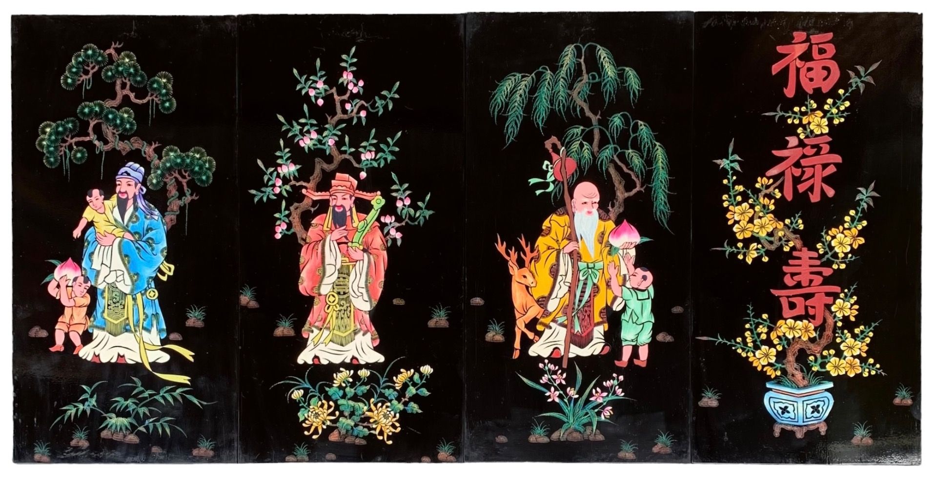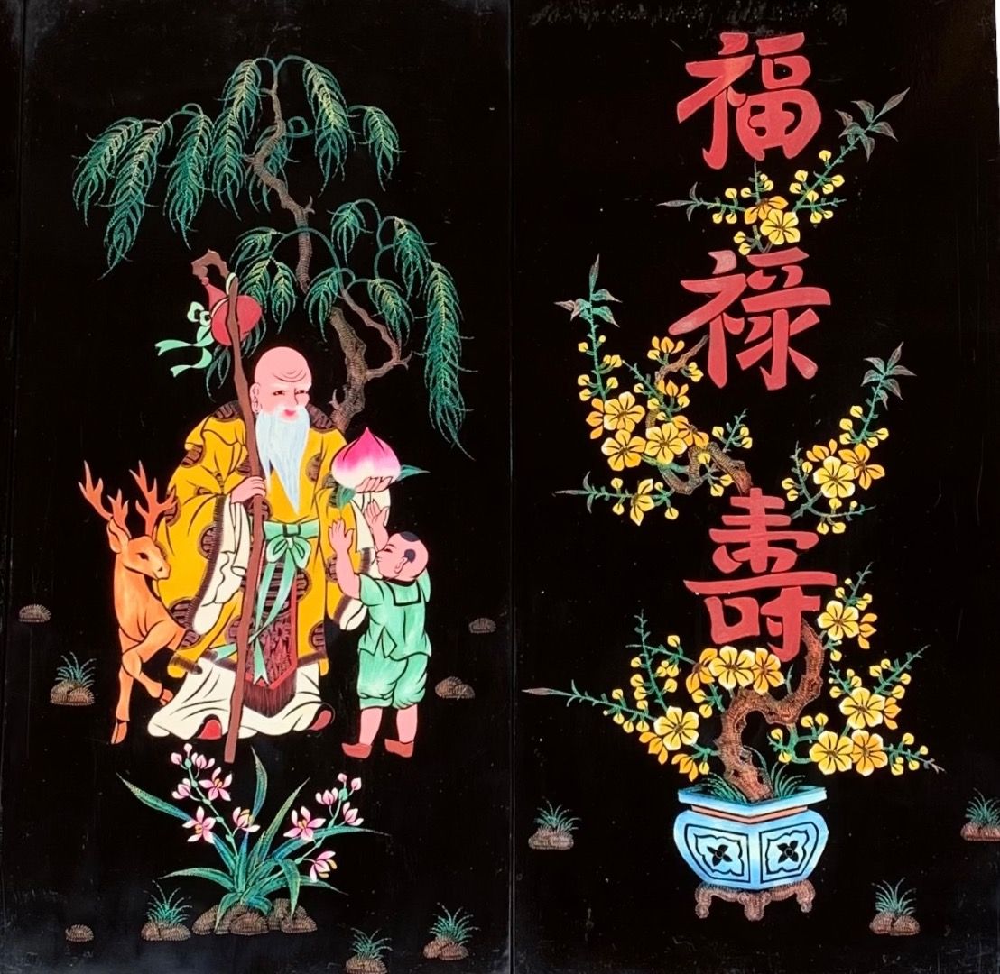 Tranh xưa Phúc Lộc Thọ khắc trũng