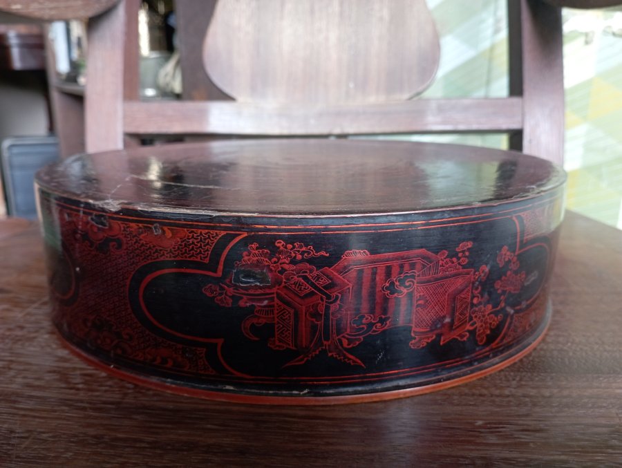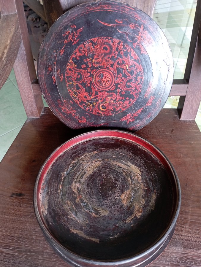 Tráp cổ xưa, một vật phẩm quí của gia đình người Hoa Chợ Lớn, vẽ khá đẹp, đượm màu thời gian. Anh em có nhu cầu sưu tập hay deco điện thoại cho mình nhé. Cảm ơn!