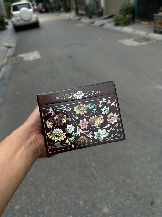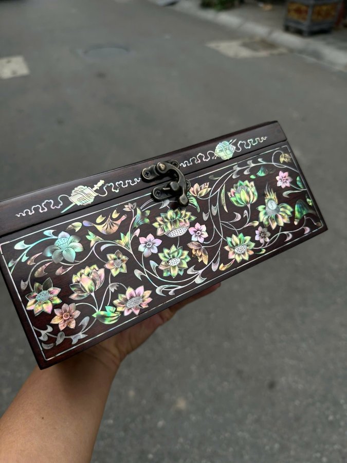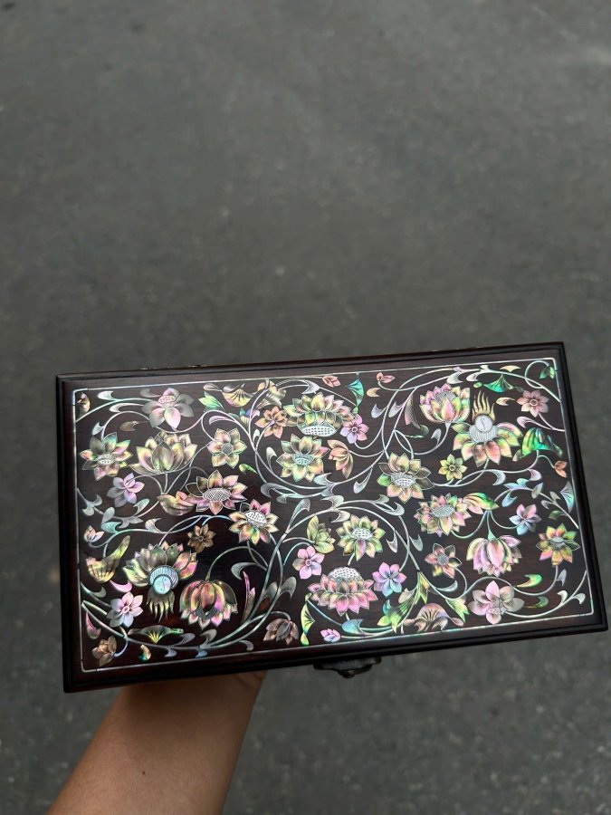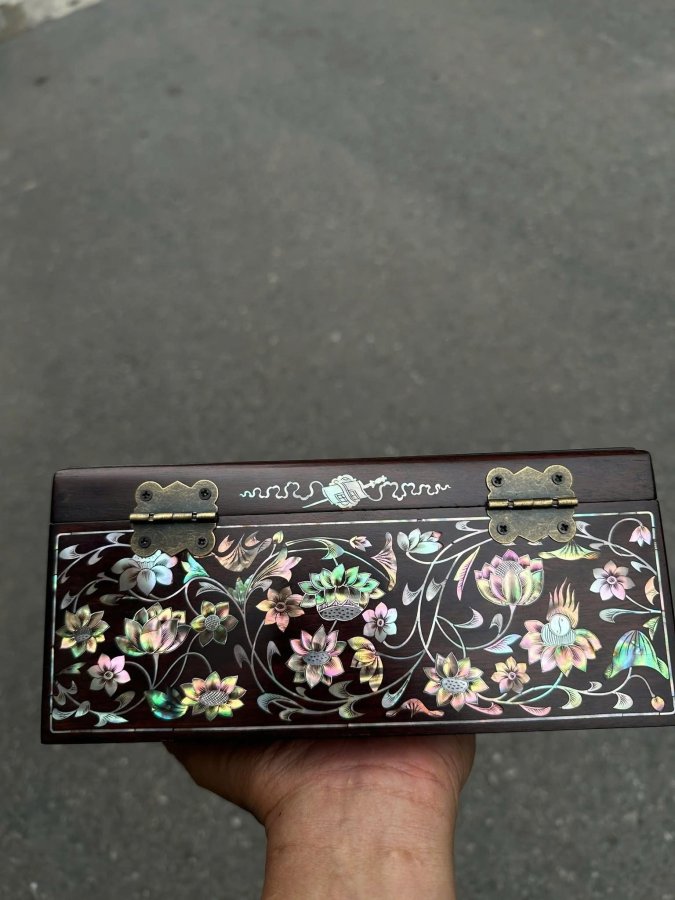 Trap đựng trang sức gỗ trắc khảm ốc 5 mặt tinh xảo và kỹ thuật, kích thước R21x12x9, anh chị em nào quan tâm liên hệ 0916198668