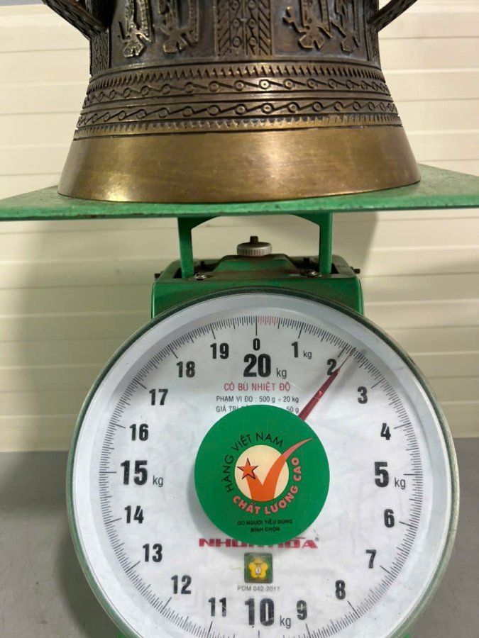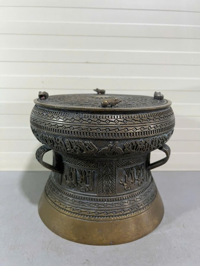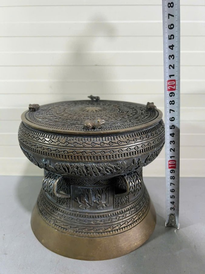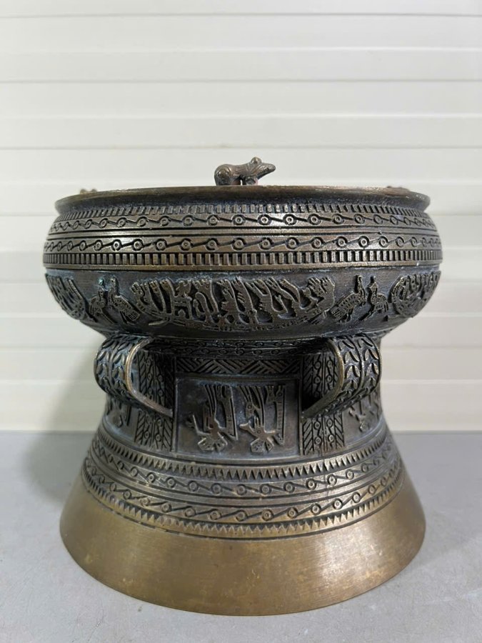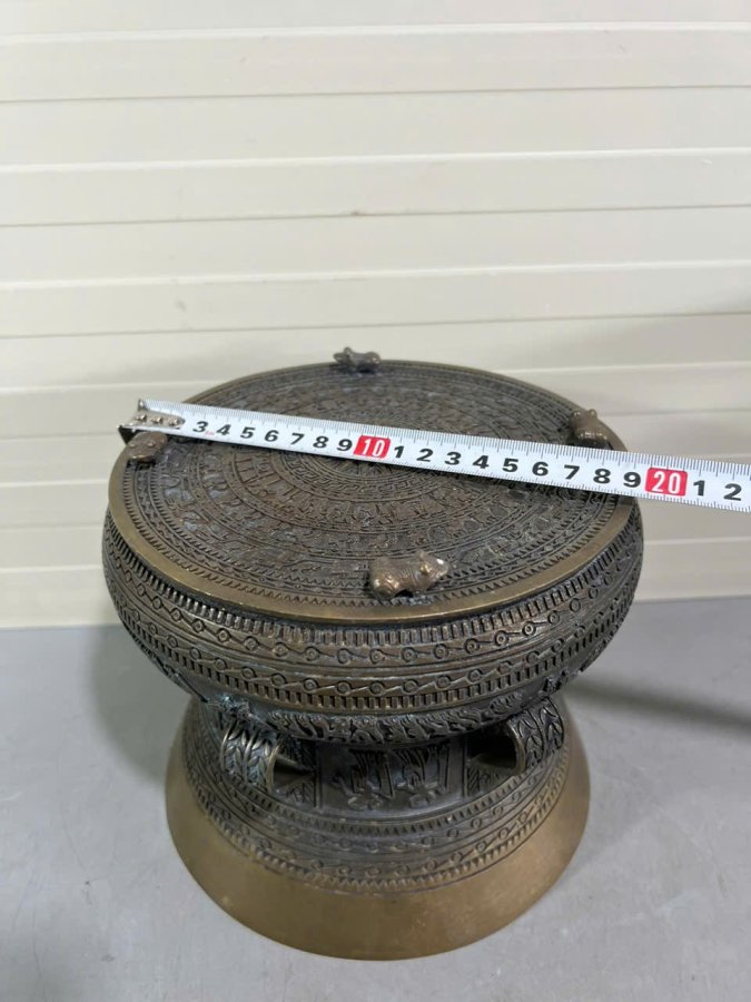 👉 Đk đáy 20cm. Tích nổi hoa văn Đông Sơn. To đẹp, 👉 Nặng 2.2kg. Đóng khung kính.