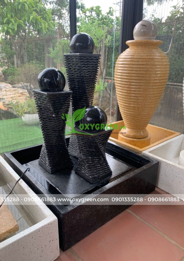 **Phụ kiện gồm: 3 trụ đá kèm bi xoay, 1 đế, 1 chậu vuông, 1 máy bơm