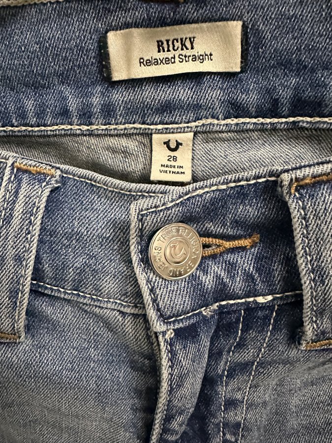 True Religion size 28, made in VN. Eo: 78, Dài: 109, Ống: 19 - 20. Còn mới 98% mặc vài lần dài không muốn cắt. Ae lấy về thích short hay mặc chơi tuỳ ý. Hàng VN gia công ko phải ****. HN. Tks !