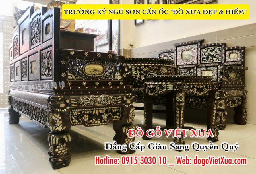 Nếu quý vị đang tìm kiếm một bộ bàn ghế hoàn hảo sang trọng độc đáo – tinh tế và đẳng cấp cho không gian sống của quý vị, quý vị hãy liên hệ ngay với Đồ Gỗ Việt Xưa qua số điện thoại [ 0915.30.30.10 ] để được tư vấn chi tiết, để không bỏ lỡ cơ hội sở hữu bộ bàn ghế Trường Kỷ Ngũ Sơn cẩn ốc xà cừ đẹp quý hiếm, một kiệt tác để đời cho không gian sống của quý vị.