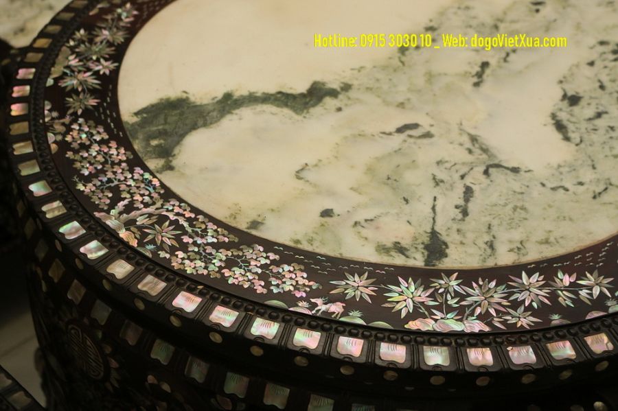 Đồ Gỗ Việt Xưa điện thoại: 0915 3030 10 tọa lạc tại địa chỉ: 173/22 An Dương Vương, P. An Lạc, Q. Bình Tân, Tp.HCM. Tự hào giới thiệu đến quý vị bộ bàn ghế Trường Kỷ Ngũ Sơn khảm ốc ( hay cẩn xà cừ ) với mặt đá Cẩm Thạch tự nhiên Vân Màu Xanh Ngọc Lục Bảo Có 1-0-2, một tuyệt phẩm độc đáo sang trọng và cực kỳ đẳng cấp, là lựa chọn hoàn hảo cho không gian sống của quý vị.