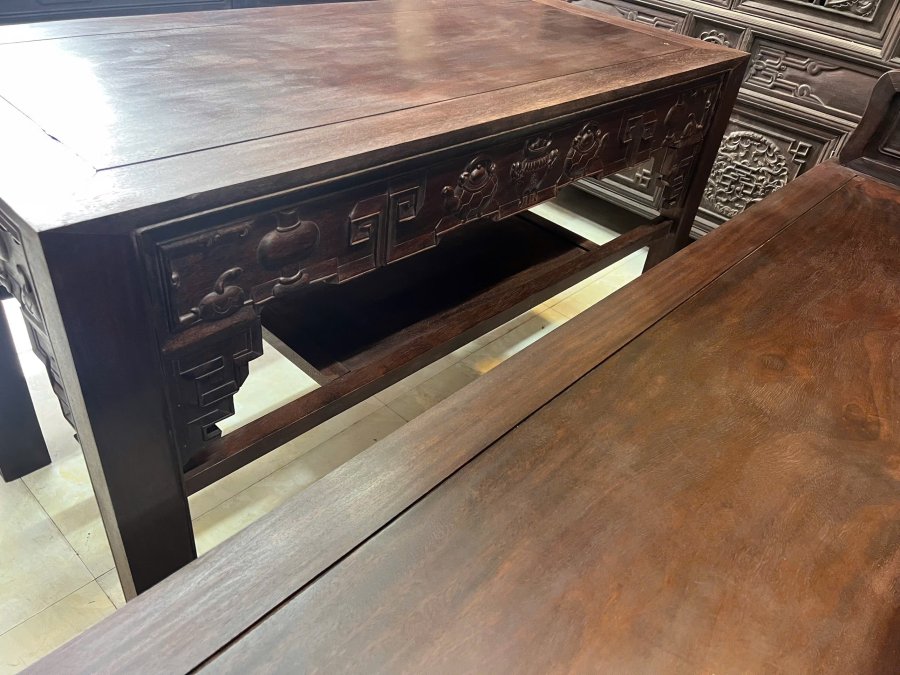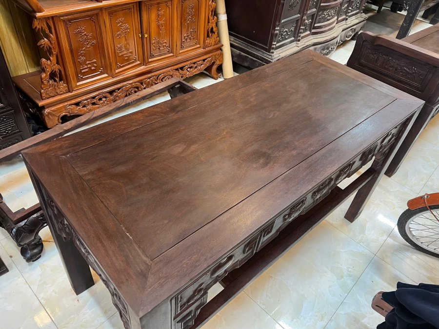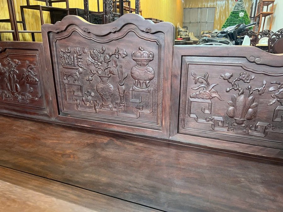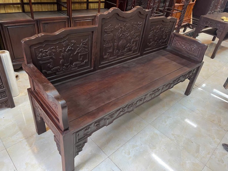 Trường kỷ Tam Sơn Ghế 190x55x110 Ban125x55x72 Hàng mộc trần đánh chay cũ