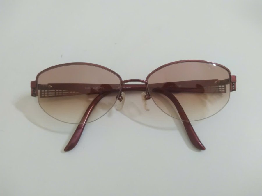 KR125 Kính râm nữ dáng nửa viền màu đỏ sắc tía Daks thương hiệu Anh Quốc. Dáng gọng đẹp màu sang rất quý phái và có phong cách riêng. Nước mạ đẹp, tròng đẹp có xước nhẹ vẫn rất tốt. Ngang 13.5cm cao 3.7cm (54-17 135). Giá nước ngoài nhiều triệu. Shop bán 820k