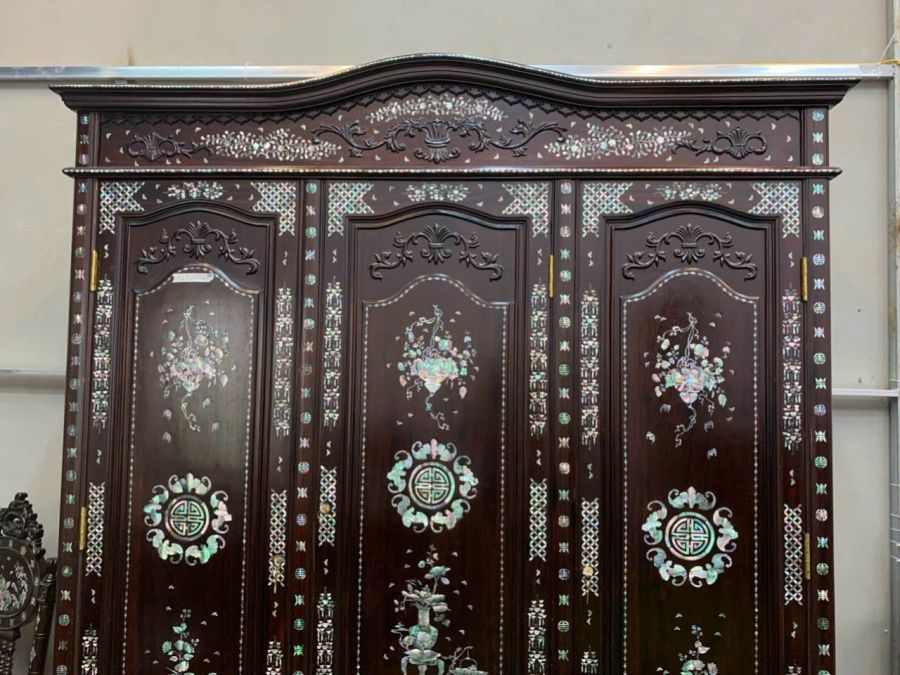 Tủ áo gỗ gụ khảm ốc 3 cánh giá 41 treiu