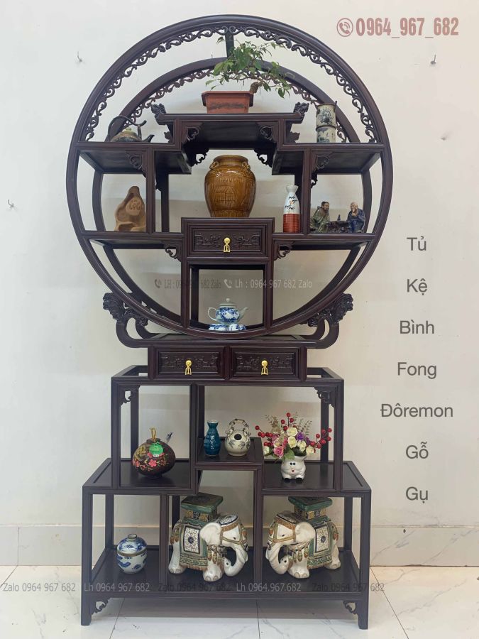 Tủ bày đồ bình phong - tủ kệ đôrêmon gỗ gụ gỗ hương mang đến sự sáng tạo trong cách bài trí phòng khách nhà bạn. Ngoài chức năng của một chiếc tủ bày đồ đôremon , còn là tấm bình phong đẹp giúp gia chủ có thể ngăn chia không gian mà vẫn giữ được độ thoáng cần thiết và mang tính thẩm mỹ cao.