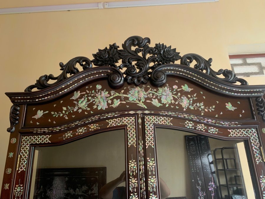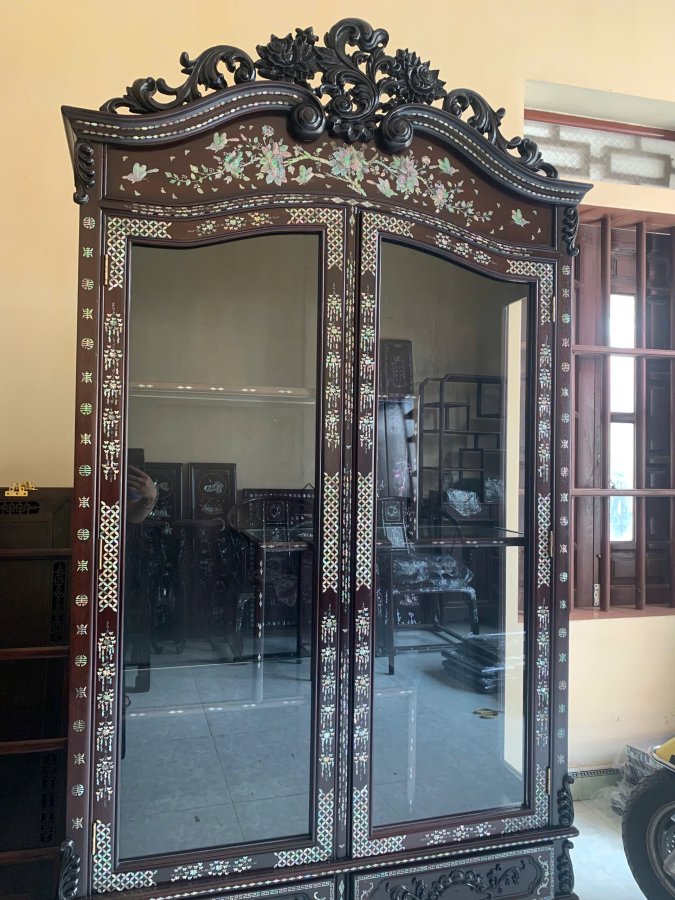 Tủ bầy đồ cành hồng Gỗ gụ kt 227-117-37