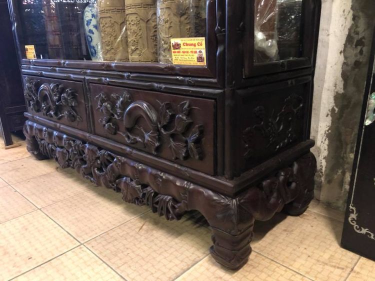 Tủ Bày Đồ chạm điển tích Trúc và Mai Cài Thọ..tích hay và mang nhiều ý nghĩa,chạm khắc hoàn toàn bằng tay mỹ nghệ thủ công rất đẹp và kì công