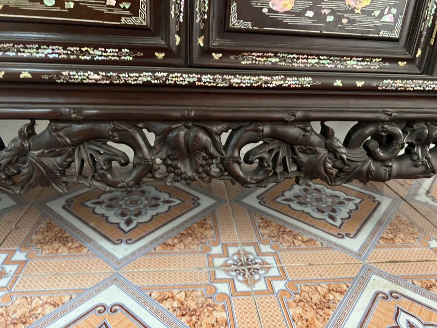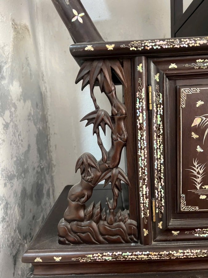 Tủ bày đồ gỗ gụ khảm ốc đỏ Kt cao 1m78 rộng 1m17 sâu 37