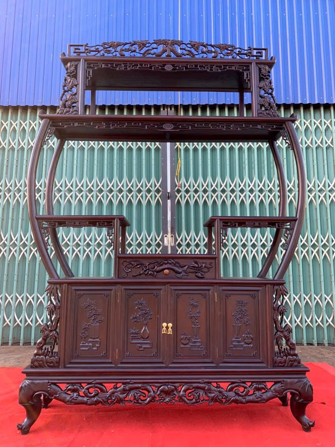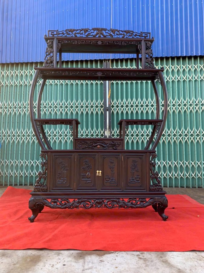 Tủ bầy đồ trúc nho gỗ gụ 4cánh kt205x145x35