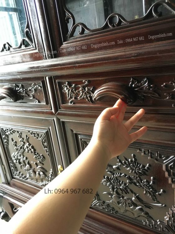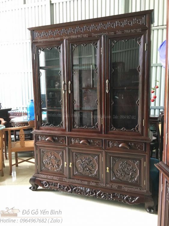 Tủ Tủ Bày Đồ 3 Buồng được chạm đục tinh tế cảnh nho trúc cúc mai. Mang đậm nét phong thủy tốt cho gia chủ.điều tốt lành bao gồm hạnh phúc, may mắn, trường thọ, thành công và khỏe mạnh.